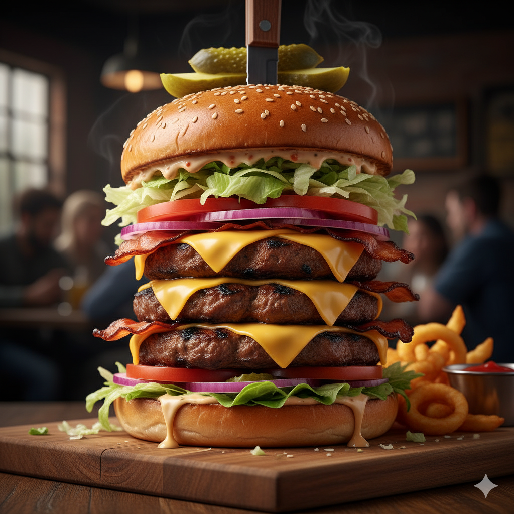 Carefully crafted fresh 3 x 1/2 Pounder Burger with Cheese. Served with Salad and Sauce of Choice