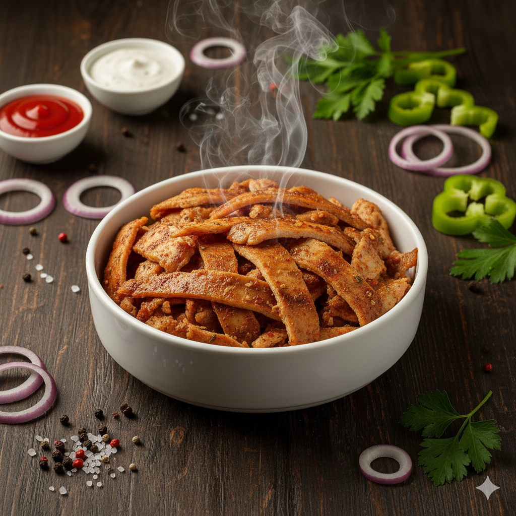 Fresh lamb cubes, special marinated cook on charcoal grill. Served with Pitta Bread, Fresh Salad & Sauce